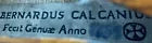 Bernardo Calcagno, o Bernardus Calcanius, como se lee en sus etiquetas latinizadas, es quizás el más destacado fabricante genovés del siglo XVIII. Aunque su obra es innegablemente italiana, es posible que haya recibido formación del fabricante alemán Andreas Statler, ya que compartían una casa y probablemente un taller alrededor de 1730.