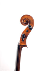 El barniz es de color carmelita oscuro, bien gastado, con matizes de color Ambar.