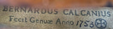 Bernardo Calcagno, o Bernardus Calcanius, como se lee en sus etiquetas latinizadas, es quizás el más destacado fabricante genovés del siglo XVIII. Aunque su obra es innegablemente italiana, es posible que haya recibido formación del fabricante alemán Andreas Statler, ya que compartían una casa y probablemente un taller alrededor de 1730.