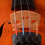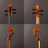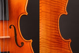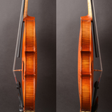 El violín con acabado antiguizado es un modelo de Stradivarius. Ha sido fabricado artesanalmente con madera de abeto y arce.